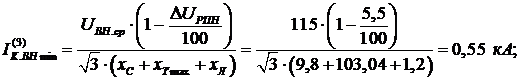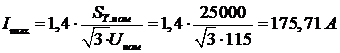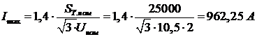 срабатывания защиты на вводе 10 кВ силового трансформатора, А