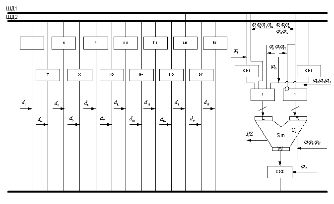 регистрах – путём соответствующих выводов к управляющему автомату.