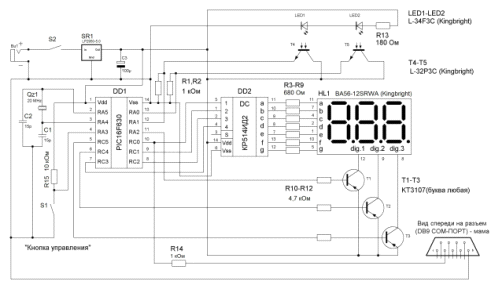 ними. Измерение производится с помощью микропроцессора PIC 16F630. Отсчет