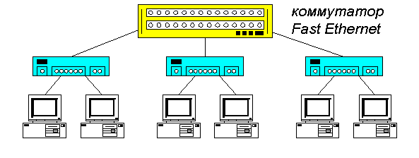 строится на основе одного или нескольких коммутаторов, являющихся неотъемлемой