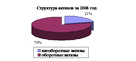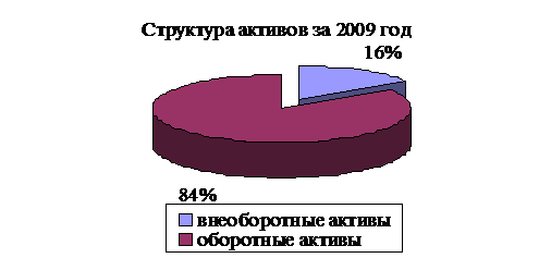 стоимости активов. Удельный вес оборотных активов на конец 2009 года составляет