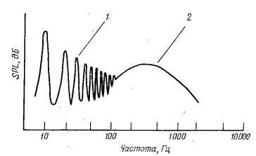 прохождения лопастей. Шум вращения преобладает в низкочастотной части спектра и