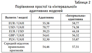 2. Математичне моделювання та аналіз адаптивних методів прогнозування валютного курсу