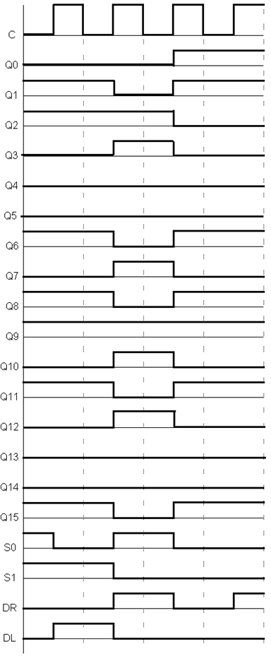 DL (DR- сдвиг вправо, DL-сдвиг влево) и синхронно с положительными фронтами