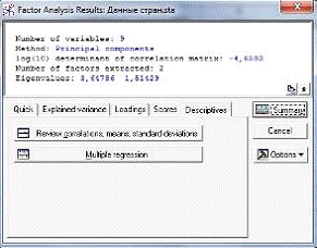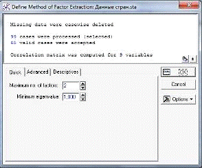 факторов, метод вращения, интерпретация нагрузок). Модуль Факторный анализ был