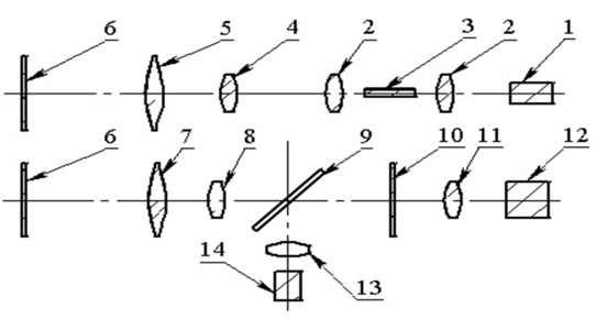 интерференционный светофильтр 10 работают в параллельном пучке лучей. Линза 13
