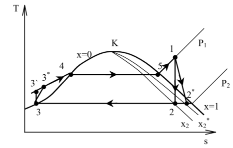 Диаграмма теплофикационного цикла в T-s координатах: