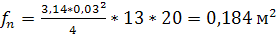 ширмового пароперегревателя равна площади поверхности выходного окна топочной