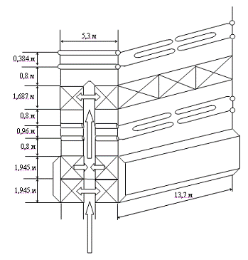 потока в верхней части топки, величиной плоскости входного сечения ширм и