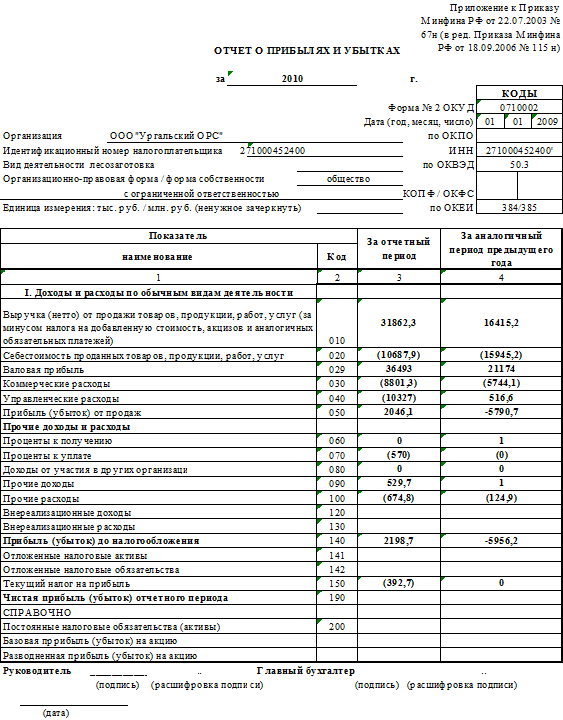 .2 Анализ финансовой отчетности ООО «Ургальский ОРС»