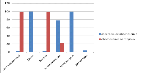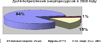 84,0%, электроэнергии - 15%, наименьший удельный вес занимает дрова и они