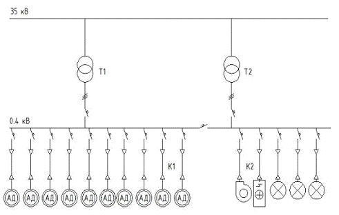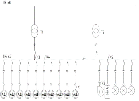 Рисунок 1. Принципиальная схема электроснабжения предприятия