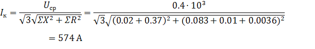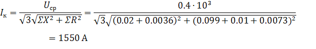 Расчёт токов короткого замыкания в точках К3=К4=К5: