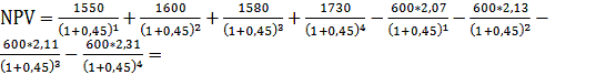 Расчетное значение NPV находится на уровне 547,9 млн. у.е.