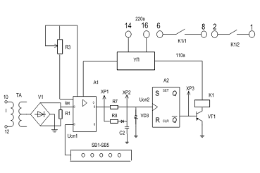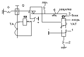 подключена к вторичной обмотке трансформатора тока ТА. При увеличении тока в
