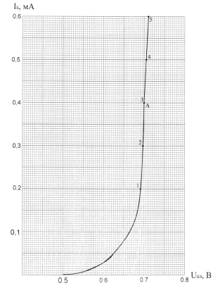 точки покою на вхідних ВАХ транзистора. Значення напруги на база-емітерному