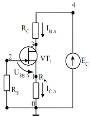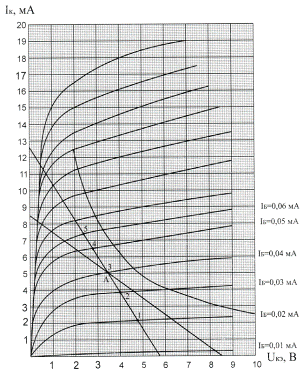 який включено за схемою зі СЕ, визначається напругою UКЕ А та струмом ІК А. Значення цих параметрів визначається