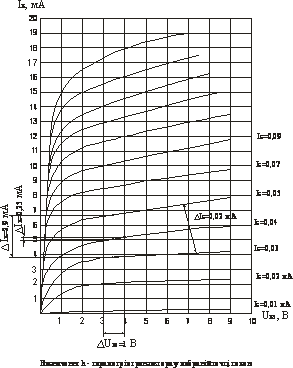 характеристиці відзначаємо ряд значень напруги UЗВ. Відповідно схемі на рис 1.9 обчислюємо для цих значень напругу