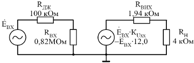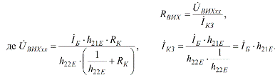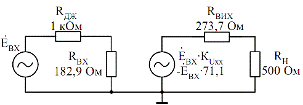 та напругою К1, К2, вхідний Rвх та вихідний Rвих опoри. У вибраній точці