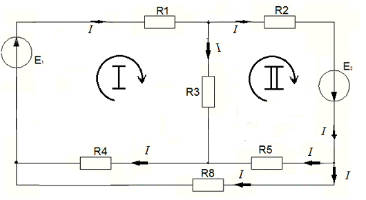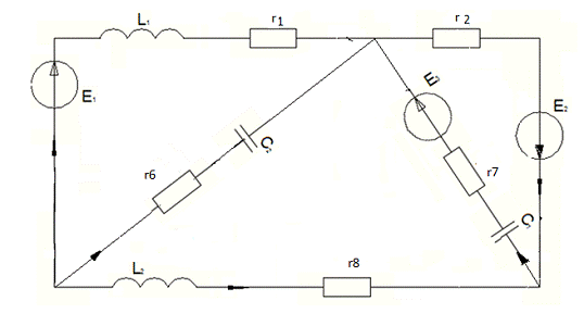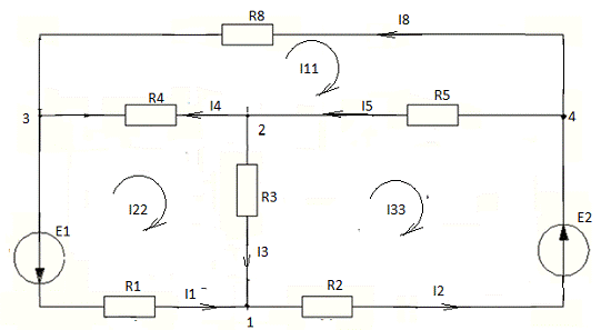 контурів. Скласти систему рівнянь для вузлів і контурів схеми, користуючись