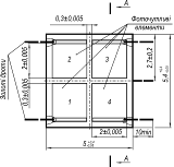 квадрат, розмір кожного ФЧЄ - 2,0 х 2,0 мм2, товщина кристалу не