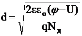 і - області виникає електричне поле. Якщо напруга U більша ніж Uвис (напруга виснаження), то область просторового заряду заповнює всю