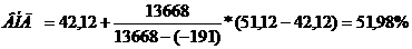 доходности достаточно велика 51,98% .Это говорит о том, что при увеличении