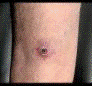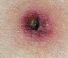 диаметре) плотный болезненный инфильтрат, покрытый коричневой некротической