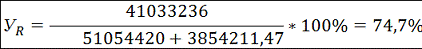 рентабельности продукции составляет 74,7%. Уровень рентабельности капитала