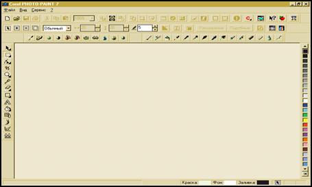 Для того чтобы начать сеанс работы с Corel PHOTO-PAINT, следует загрузить систему Windows 95, раскрыть папку Corel Applications и выполнить двойной щелчок строки Corel PHOTO-PAINT 7. Через некоторое время на экране появится рабочее окно,