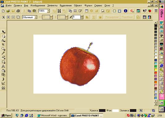 1. Закройте документ APPLE. PCX и откройте изображение APPLEOBJ.PCX, которое вы ранее создали как объект,