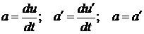 ускорения в обеих системах одинаковые. Учитывая, что в уравнение движения