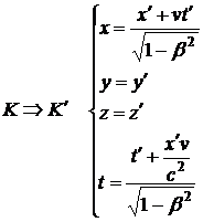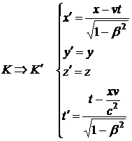 Эти преобразования называются преобразованиями Лоренца. Если сравнить их