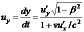 Если продифференцировать координаты по времени, то получим формулу сложения