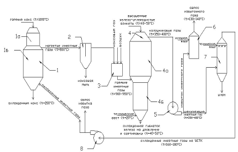 ) Получение губчатого железа в шахтной печи методом твердофазного