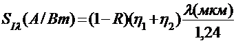 довжині хвилі 0,9 мкм - не менше 0,15 А/Вт;