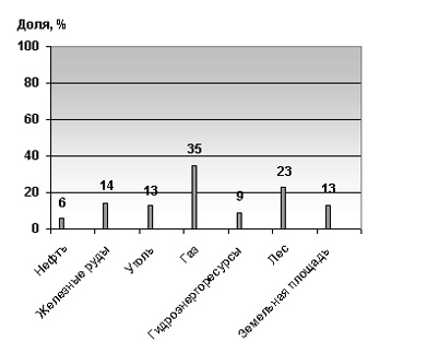 Рис 1. Доля России в общемировых запасах природных ресурсов