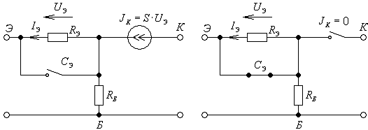 Рисунок 5.3 - эквивалентные схемы транзистора на крайних частотах