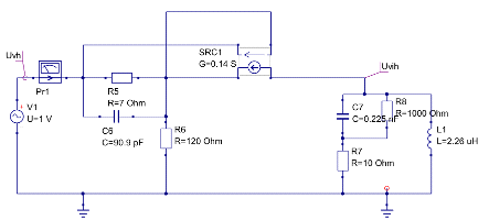 Рисунок 6.1 - Схема исследуемой цепи в Qucs