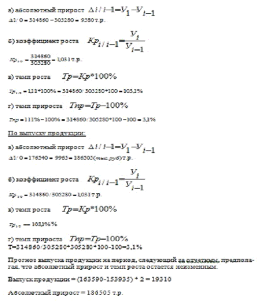 коэффициент роста, среднегодовой темп роста. Спрогнозировать выпуск продукции