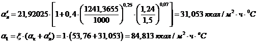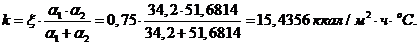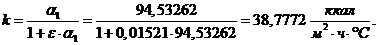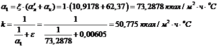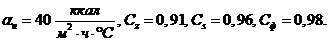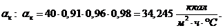 aк = aн×Сф×Сl = 30×1,14×1 = =34,2 ккал/м2×ч×оС.