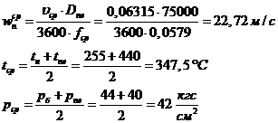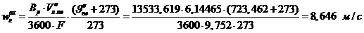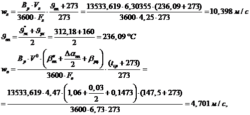Находим скорости газов и воздуха: