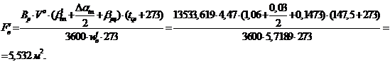 Определяем необходимую площадь живого сечения для прохода воздуха: