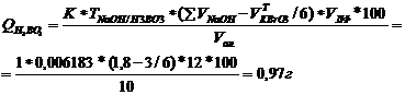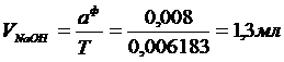 теоретический обьем 0,1 н раствора NaOH пошедший на титрование: