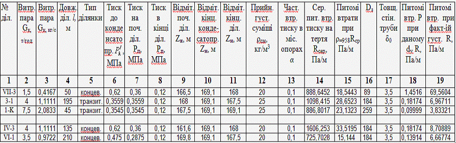далі визначаємо напори в подавальному трубопроводі послідовно по ділянках від