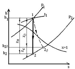 називають доступним теплоперепадом. Для водяної пари доступний теплоперепад