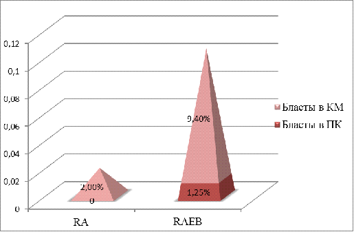 острый миелобластный лейкоз, рефрактерная анемия, рефрактерная анемия с