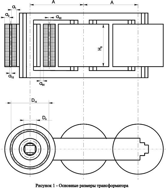 основные электрические величины, рассчитаны обмотки высокого и низкого
