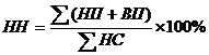 НН = (513/1696 + 168/1091 + 163/1091)*100% = 60%