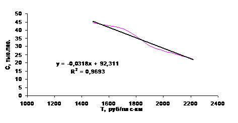 Себестоимость перевозки одной тонны мяса в зависимости от